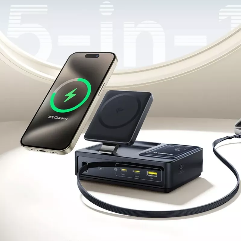 Say goodbye to the clutter of multiple chargers and cables. The 5-in-1 functionality allows you to charge up to five devices simultaneously, keeping your workspace neat and organized while ensuring every device is powered quickly. With its retractable cable and adjustable stand, you’ll enjoy seamless charging without the mess of tangled wires.