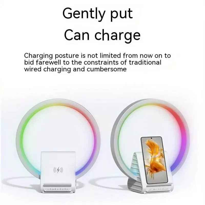 Introducing a symphony of light and sound – our vibrant 15W Dazzle Color Bluetooth Speaker with Wireless Charging and Ambient Light. This compact marvel brings a rich audio experience, effortless wireless charging, and a mesmerizing light show to your fingertips. Perfect for setting the ambiance in any room or enlivening your outdoor adventures, this speaker is a delightful fusion of practicality and fun.