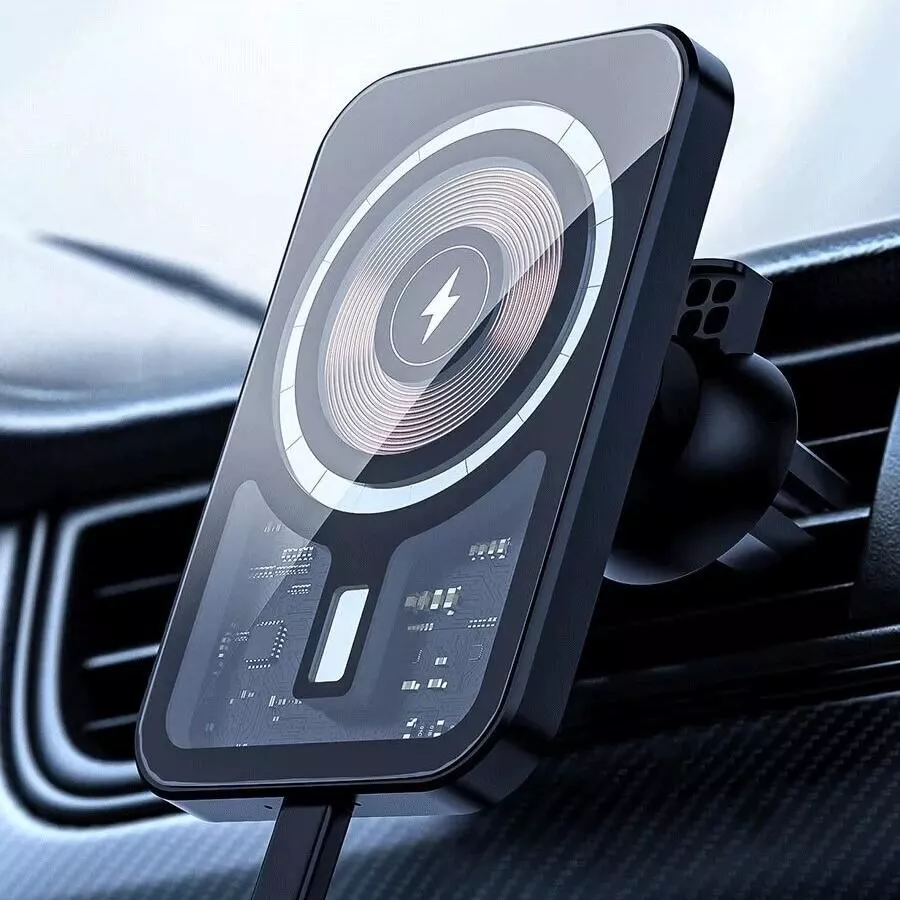 What sets our charger apart is its powerful magnetic mount, which guarantees your phone stays put even on the bumpiest roads. The fast wireless charging technology ensures your device is always ready to go, while the single-handed mount and adjustable viewing angles provide unmatched convenience. Experience the perfect fusion of style, technology, and convenience with our 15W Fast Charging Magnetic Wireless Car Charger.