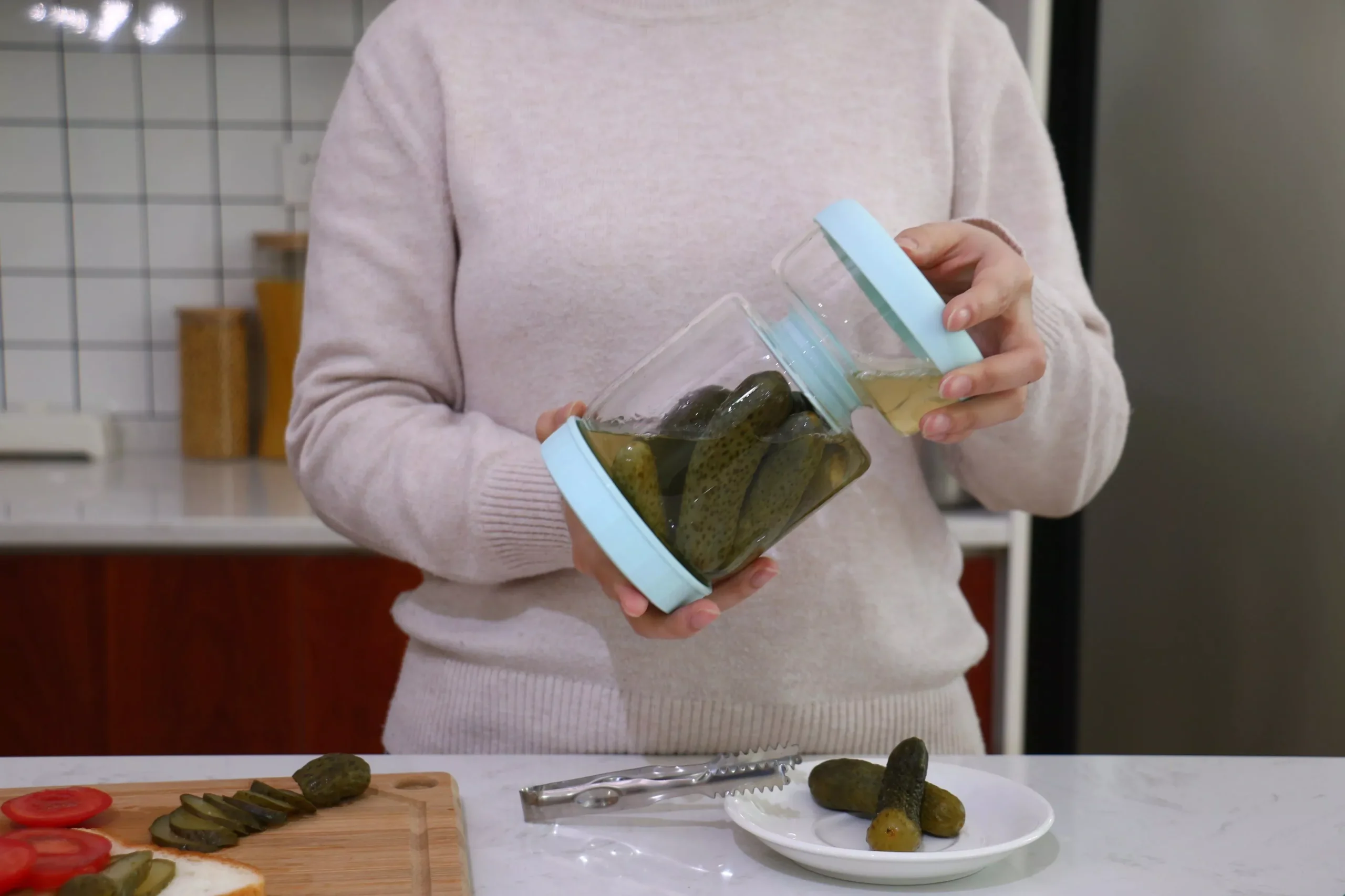 - Wet and Dry Separation: The jar’s clever design allows for easy separation of liquid from food, ensuring your pickles and olives are not soaked when serving.