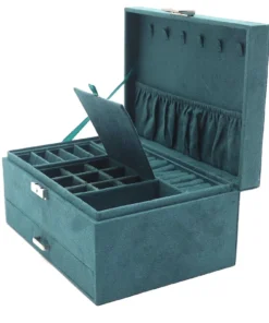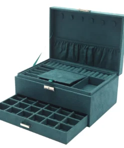 Introducing our new 3 Layers Jewelry Box Organizer, a chic and spacious solution for your precious accessories. Embrace the elegance of the dark green flannel material that not only adds a touch of sophistication but also ensures your jewelry stays in pristine condition. Unleash the fashionista in you as you explore the unique features of this stunning jewelry box.