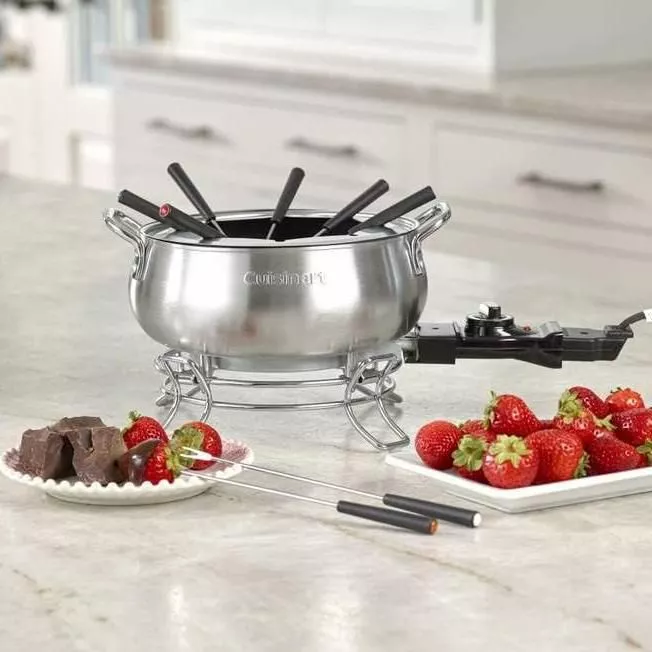 - Adjustable temperature control with eight settings for perfect fondue consistency.