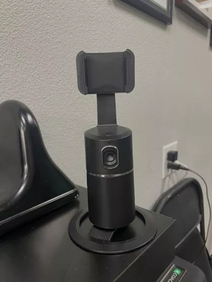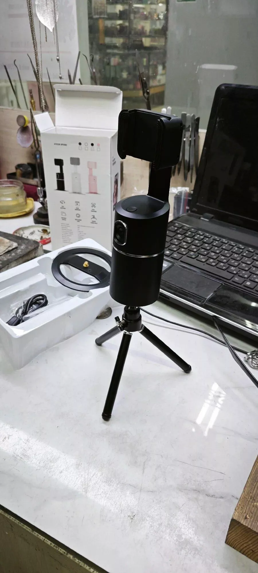 This face tracking tripod is fantastic. It offers a full 360-degree rotation and comes with a small stand, or you can attach it to a tripod stand.