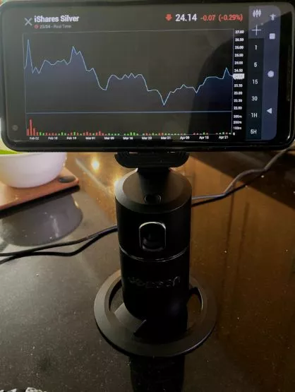This is a good phone holder, but there is room for improvement. It holds the phone really well. I use it to talk to my family and make videos for my social media. You can also attach it to other tripods. The only thing that needs improvement is the rotation. It doesn’t track movement fast; it’s super slow. Sometimes it gets stuck on one side and doesn’t move to another direction.