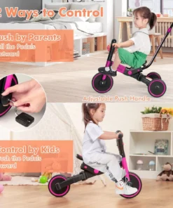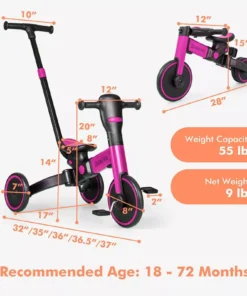 Introducing the perfect companion for your little adventurer – the 4-in-1 Foldable Toddler Tricycle! Designed to grow with your child, this versatile tricycle is ideal for children aged 4 to 12 years, offering an exciting blend of fun and functionality. With its striking pink color and modern style, it’s sure to capture the hearts of kids and parents alike.