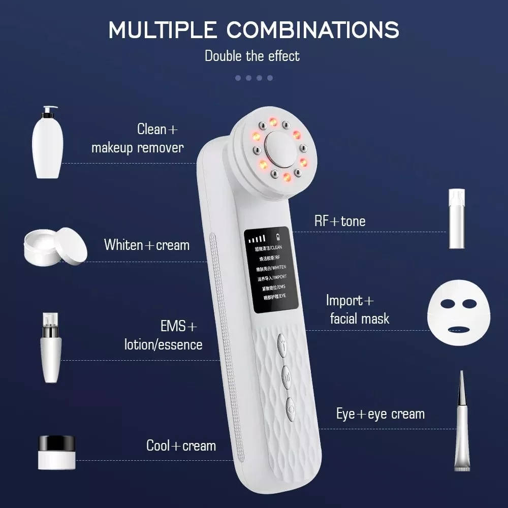 - Seven modes: Clean, RF, Whiten, Import, EMS, Eye, and Cool to cater to diverse skin needs.