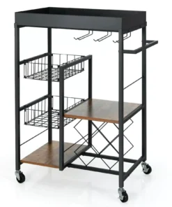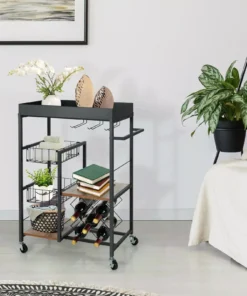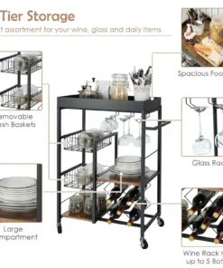 Constructed with premium materials, this cart boasts anti-scratch and water-resistant wood boards alongside a rust-resistant steel frame. It’s not just a bar cart; it’s a side table, storage buffet, and utility trolley all rolled into one durable, versatile piece.