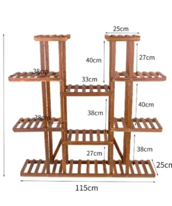 Introducing the perfect solution to display your cherished plant collection – a versatile and stylish multi-tier plant stand that brings the beauty of nature into your home or outdoor space. Crafted from natural pine wood with a warm, medium brown stain, this plant stand is not just a functional piece of furniture but a statement of classic elegance. Its robust design supports a diverse array of vibrant plants, flowers, and decorations, making it an indispensable addition to your living space.