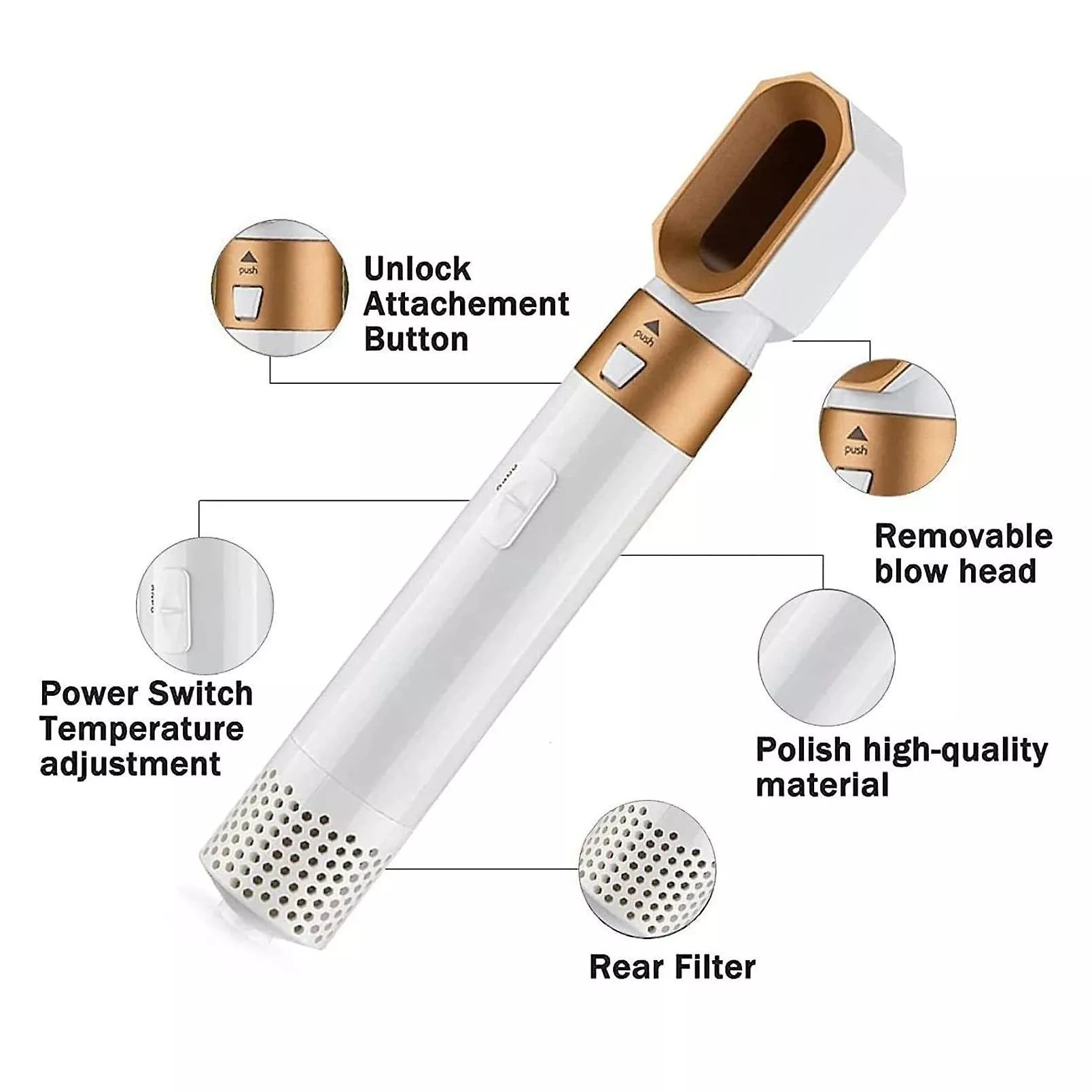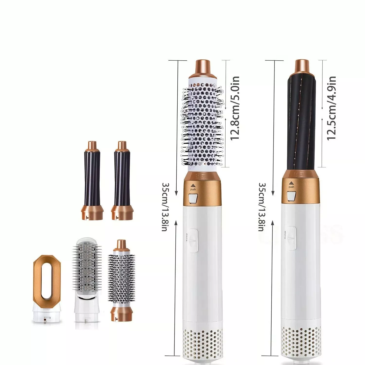 - 5-in-1 Versatility. Comes with five easy-to-use attachments for straightening, curling, volumizing, and styling. It’s like having a full salon toolkit in one handy device!