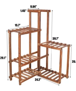Introducing our meticulously crafted 6-Tier Wooden Plant Stand, designed to bring a touch of nature into your home or garden with elegance and simplicity. Perfect for showcasing your beautiful collection of flowers, succulents, and planter pots, this stand is not just a piece of furniture, but a statement of style and nature’s beauty. Crafted from high-quality pine wood with a stunning carbon wood finish, it blends seamlessly into modern and traditional decors alike.
