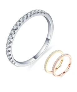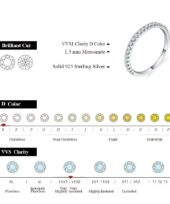 What sets this ring apart is its meticulous craftsmanship and premium materials. The ring boasts a total of 0.27 ct of round, excellent cut moissanite diamonds. Each of the 18 pieces is precision-cut, measuring 1.5mm, ensuring maximum brilliance and sparkle. The moissanite diamonds are of the highest quality – VVS EF grade, guaranteeing a flawless appearance. Set in 100% 925 sterling silver, the ring has a luxurious white gold appearance, complemented by a white rhodium plating that enhances its beauty and durability.
