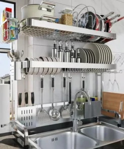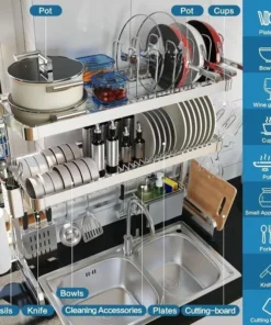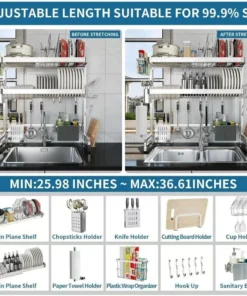 Introducing the ultimate solution for modern kitchens – our Adjustable 3-Tier Stainless Steel Over The Sink Dish Drying Rack. Crafted to enhance your kitchen’s functionality and style, this drying rack is not just a dish drainer but a complete kitchen organization system. Its sleek, silver design brings a touch of sophistication to any kitchen decor.