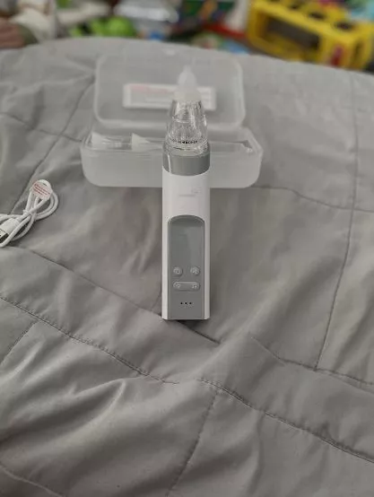 This nasal aspirator is a must-have for moms of little ones. It features lights and sounds to make the process more pleasant for tiny noses. The suction is smooth and gentle, efficiently getting the job done. The components are easy to clean, it maintains consistent charging, and comes in an organized case. Highly recommended!