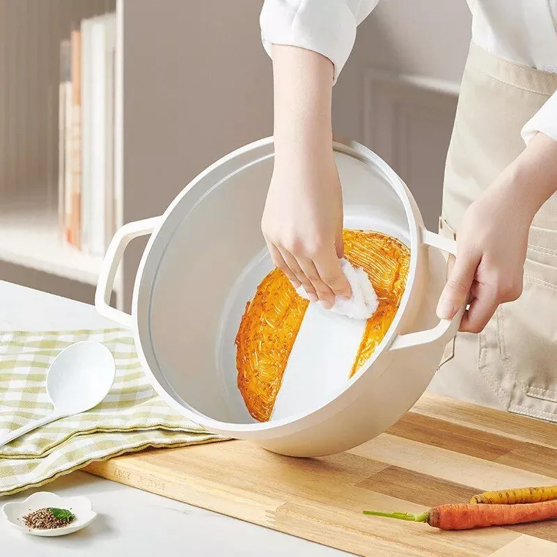 Whether you’re simmering a hearty stew, boiling pasta, or preparing a family-sized casserole, this stockpot is your go-to cookware. Its efficient heat distribution ensures that your food cooks evenly, preserving flavors and nutrients. The non-stick surface guarantees that your meals will slide out effortlessly, making both cooking and cleaning a breeze.