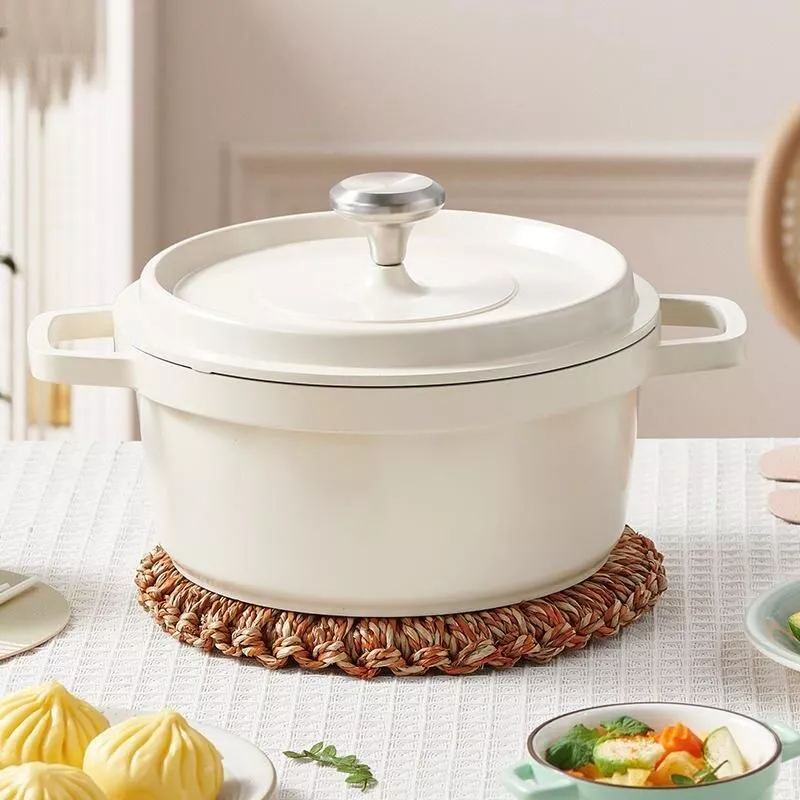 Introducing our latest addition to your culinary arsenal – the Aluminum Die-cast Non-stick Enamel Stockpot With Lid. This eco-friendly and high-quality cookware is a must-have for both amateur cooks and professional chefs. Its sleek design, combined with unparalleled functionality, makes it a standout piece in any kitchen.