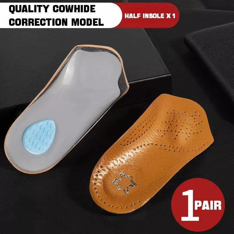 Discover the ultimate solution to foot discomfort and pain with our Arch Support Cowhide Insoles, specifically designed for individuals suffering from plantar fasciitis, flat feet, heel varus, and O/X leg conditions. These half orthopedic insoles are crafted to offer not only relief but also a foundation of support for everyday activities, ensuring your feet are cared for in every step you take.