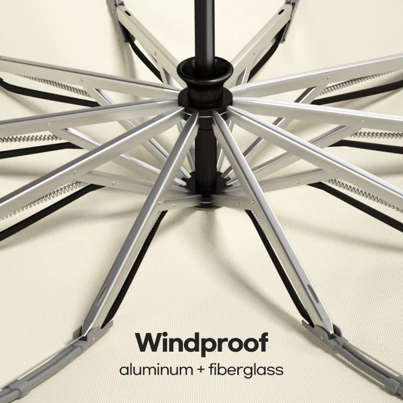 - Windproof and Strong: With 10 fiberglass ribs and a sturdy alloy and fiberglass skeleton, this umbrella stands strong against heavy winds.