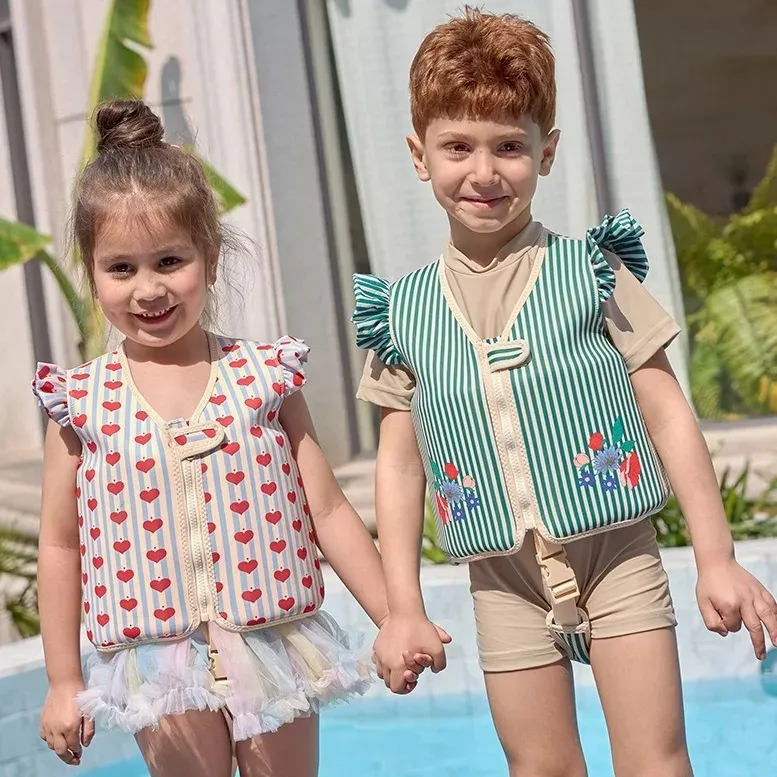 Our swim ring vest is crafted from high-quality, rain-grade non-phthalate material. This ensures that the vest is thick, soft, and incredibly durable. The foam used is non-toxic, providing peace of mind for parents. Safety is our top priority, and this product is designed to help children learn to swim in a safe and supportive manner. However, always remember that this vest is not a lifesaving device and should be used under adult supervision in shallow water.