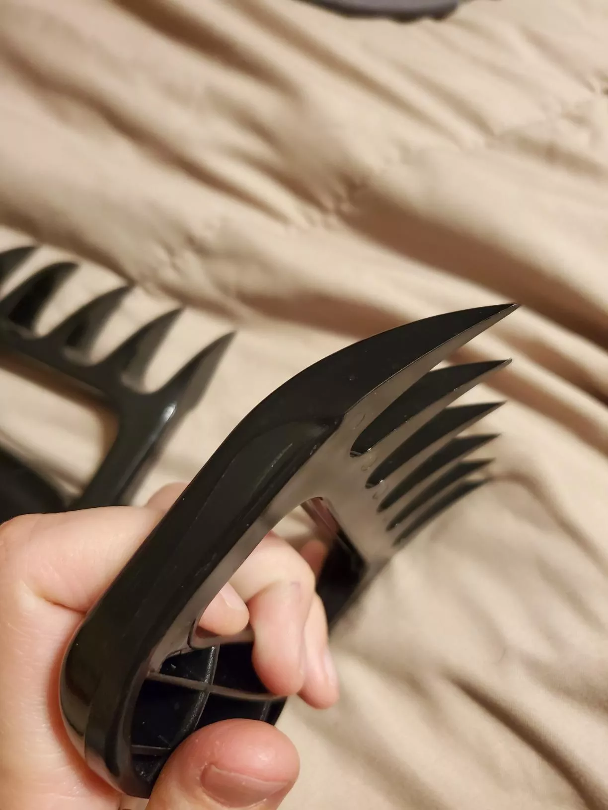 These will make making shredded barbecue much easier. I usually slow cook pork for barbecue. I use a hand mixer for chicken, but that doesn’t work with pork. These claws are like extensions of my hands. The product arrived quickly.
