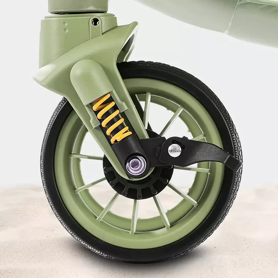 - Four-wheel shock absorbers provide a smooth and bump-free journey, keeping your baby at ease.