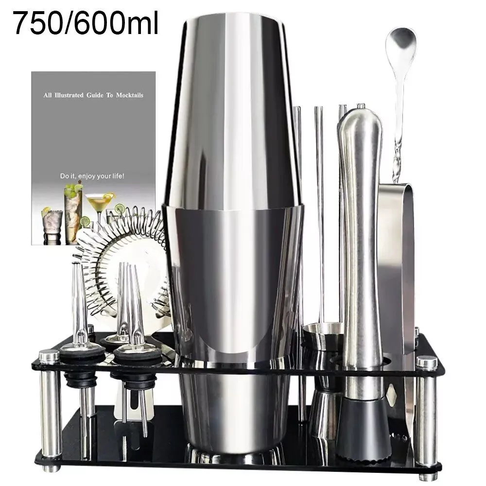 Whether you’re a professional bartender or a cocktail enthusiast, our 13-22 piece Boston Cocktail Shaker Set is designed to elevate your mixology game. This comprehensive kit, available in four distinct packages, provides you with everything you need to create exquisite drinks that will leave your guests impressed. The shakers are crafted from premium stainless steel, ensuring durability and a touch of elegance in your bar setup. The 750ml and 750/600ml capacity options cater to all your mixing needs, while the black acrylic holder keeps your tools organized and adds a sleek aesthetic to your bar counter.