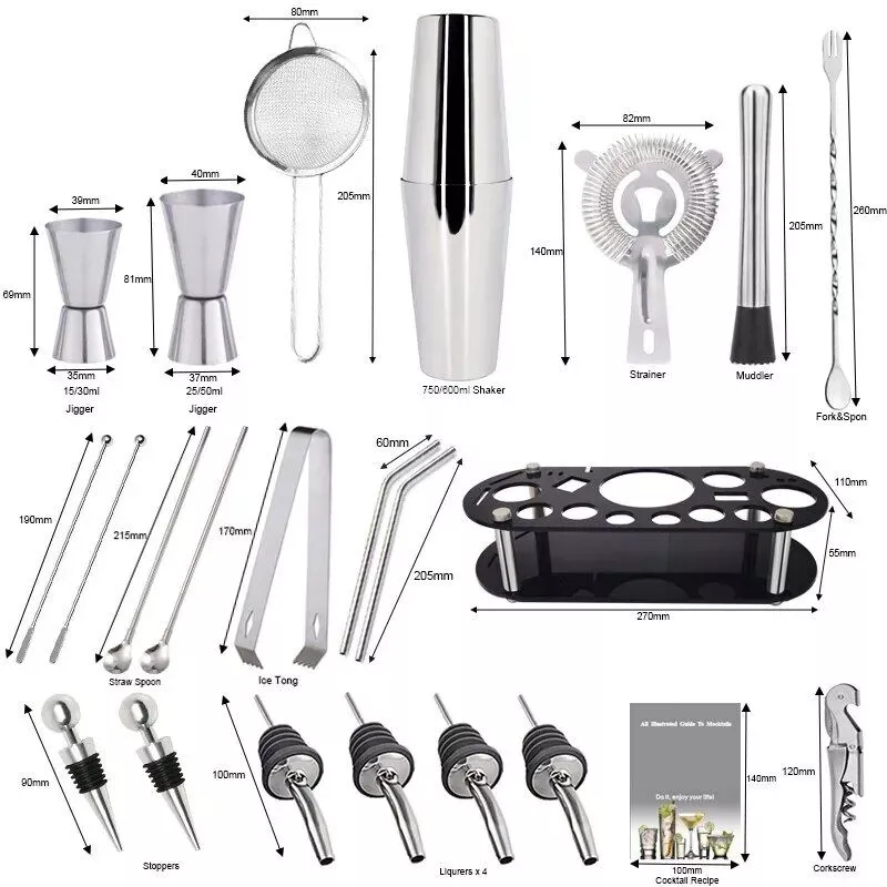 We offer four package options, each curated to suit different preferences and needs. Whether you prefer the classic 750ml shaker or the versatile 750/600ml option, we have a set that’s perfect for you. Each package includes a variety of tools, ensuring you have everything you need to start mixing right away.
