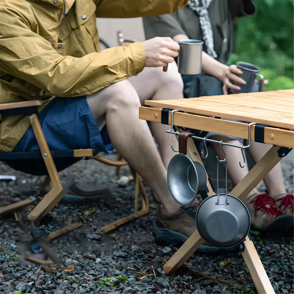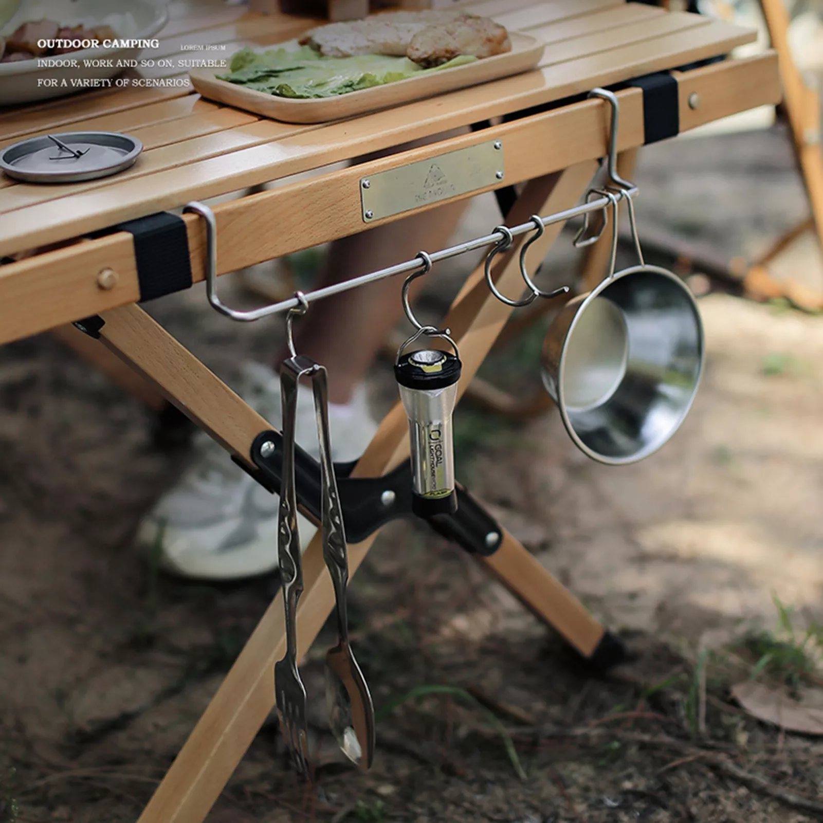 What sets our Camping Hang Rack apart is its robust construction and practical design. Made from 304 stainless steel, it resists rust and corrosion, ensuring long-lasting use. Its compact size and lightweight design make it convenient to carry, while the easy-to-attach hook system ensures a secure fit on most table edges.