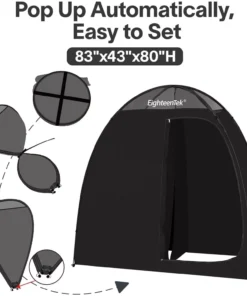 This versatile outdoor shower tent and changing room is not limited to camping alone. Whether you’re at the beach, in a photo studio, or attending a dance class, it provides the perfect private space for changing, showering, using the restroom, spraying paint, and more. It’s your go-to solution for a mobile camp restroom, storage, portable toilet tent, and privacy shelter, catering to all your needs.
