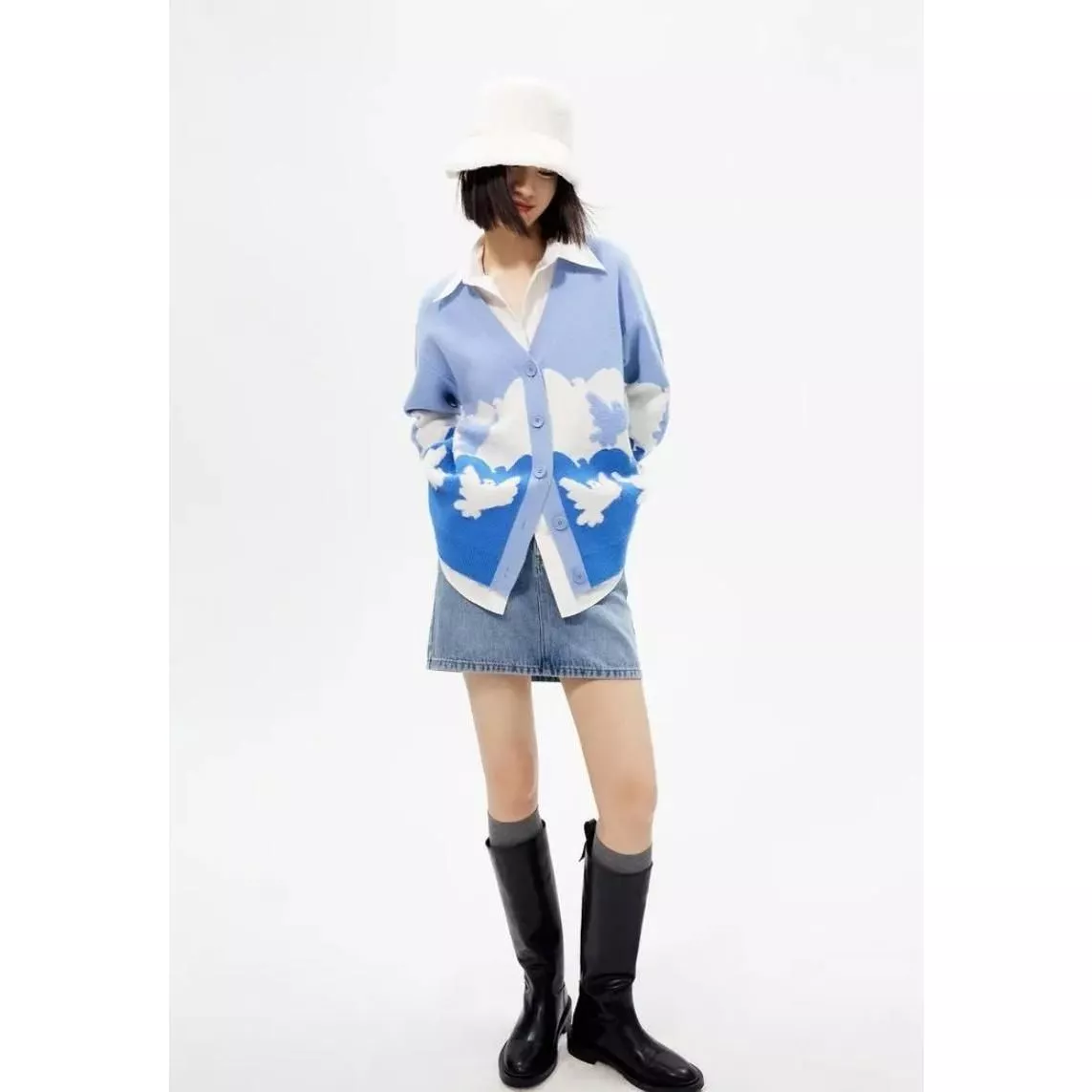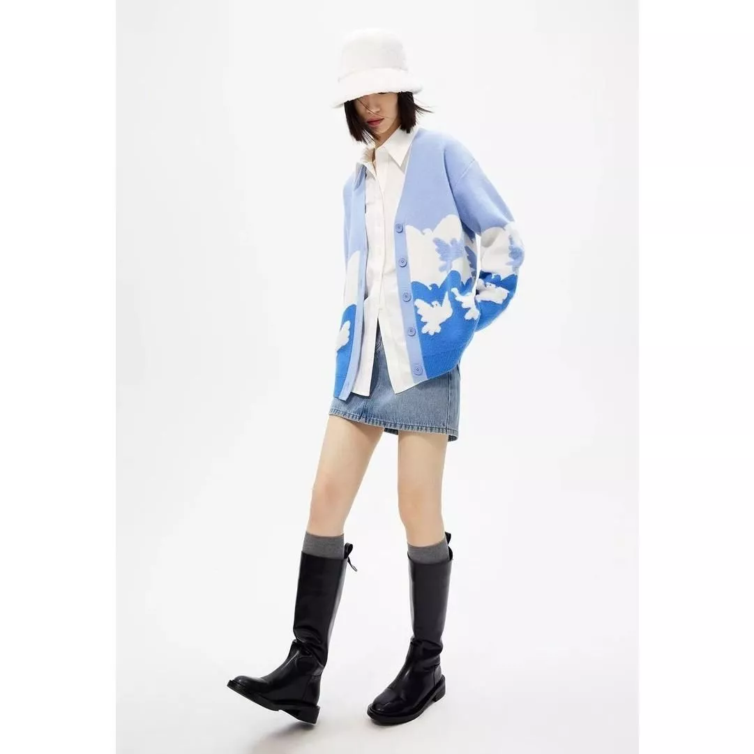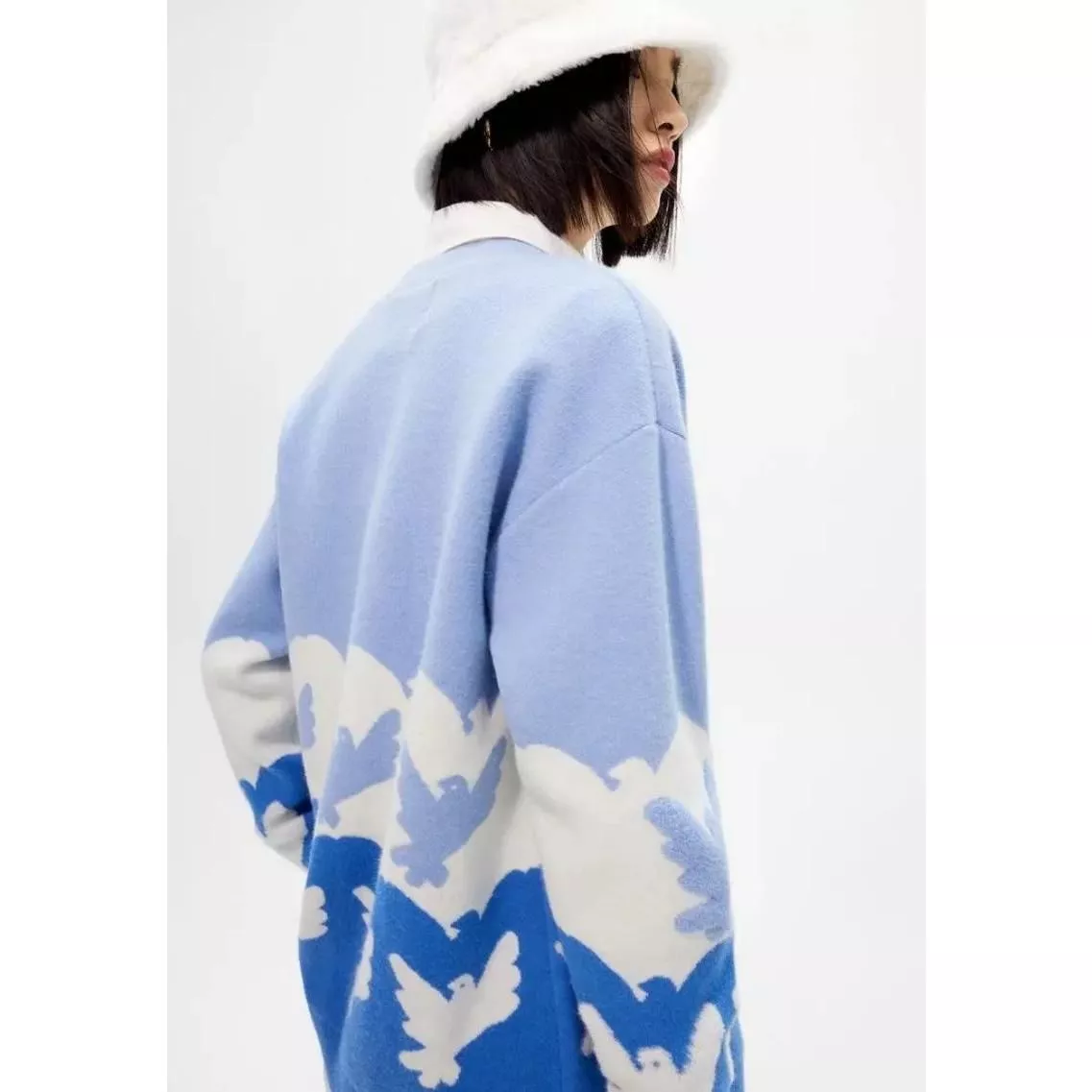 - Stylish Design: The chic pigeon pattern adds a fashionable twist to the classic cardigan.