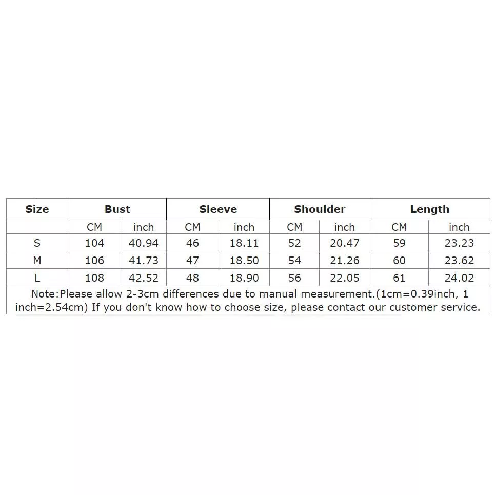 Note: Please refer to the size chart for accurate measurements and allow a 2-3cm difference due to manual measurement.