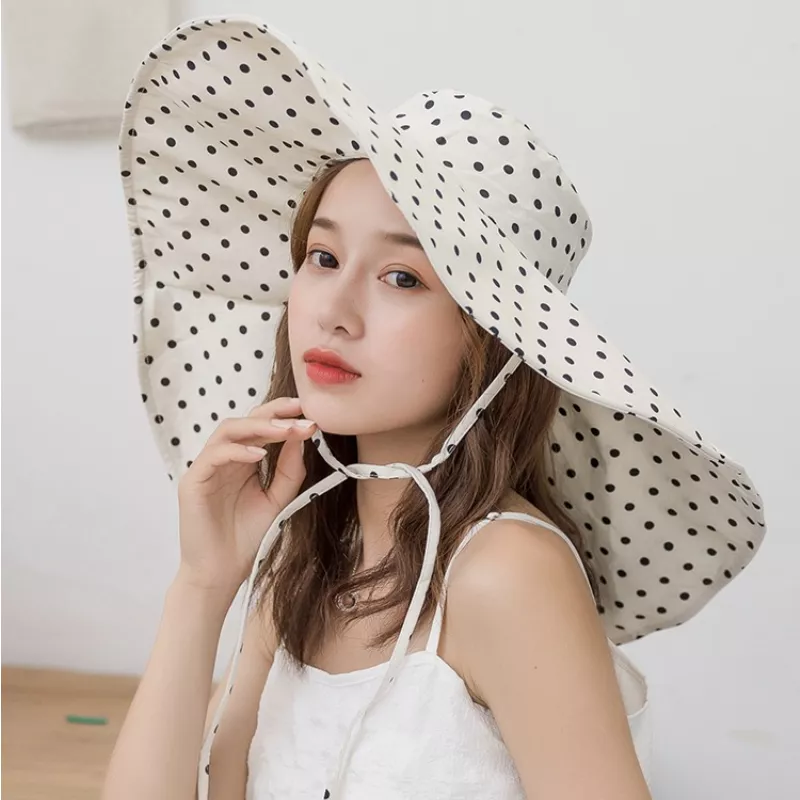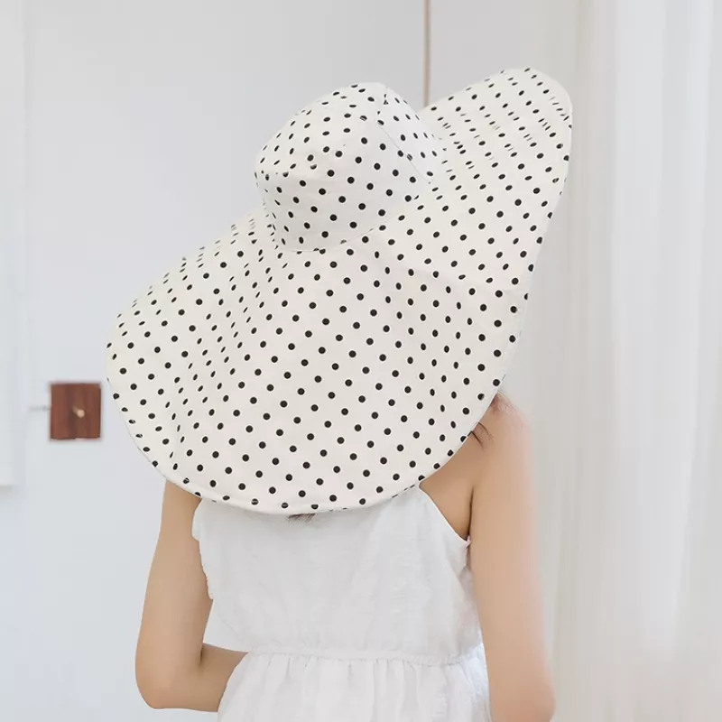Step out in style while shielding yourself from the sun with our Chic Oversized Polka Dot Sun Hat. Perfect for the sunny days of spring and summer, this elegant accessory combines fashion with functionality, making it a must-have for your beach vacations and outdoor adventures.