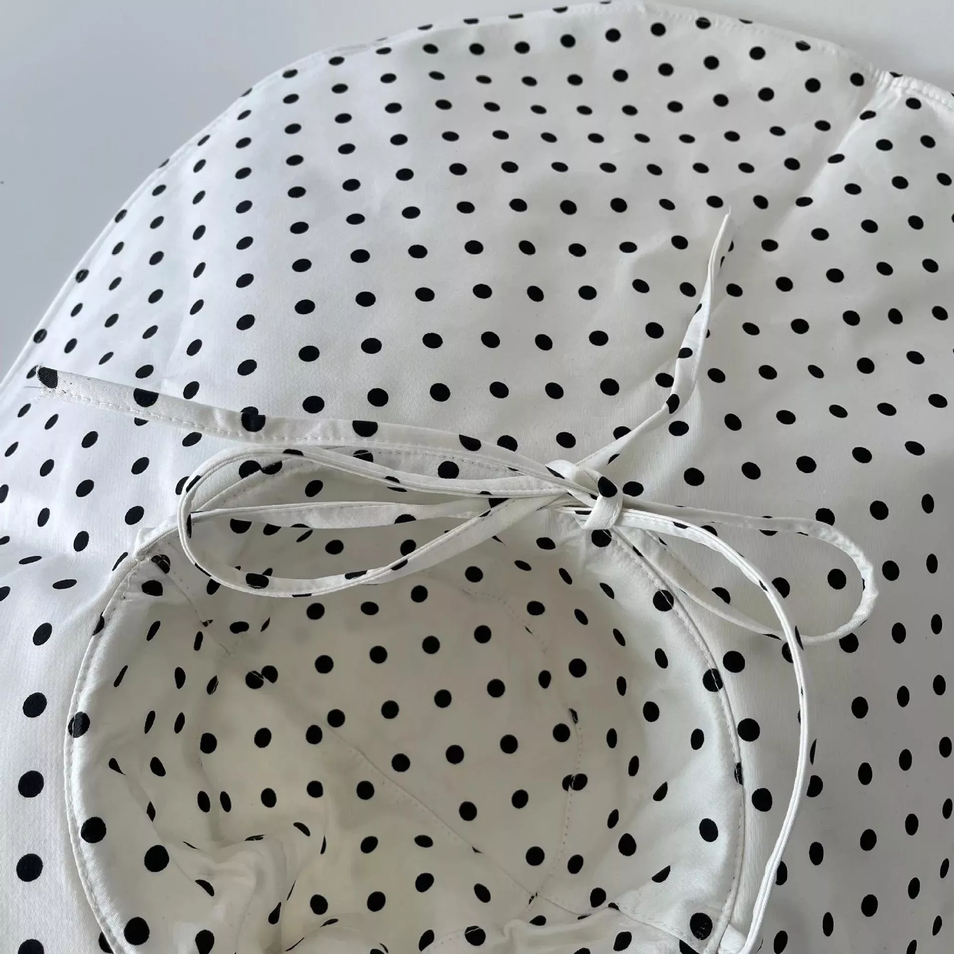 Crafted from lightweight, breathable polyester, this dome-topped bucket hat ensures comfort even on the warmest days. The standout feature is its generously oversized brim, designed to offer extensive coverage for your face and neck, providing excellent sun protection. The charming polka dot pattern adds a touch of timeless elegance, making it an ideal accessory for those who appreciate classic styles with a modern twist.