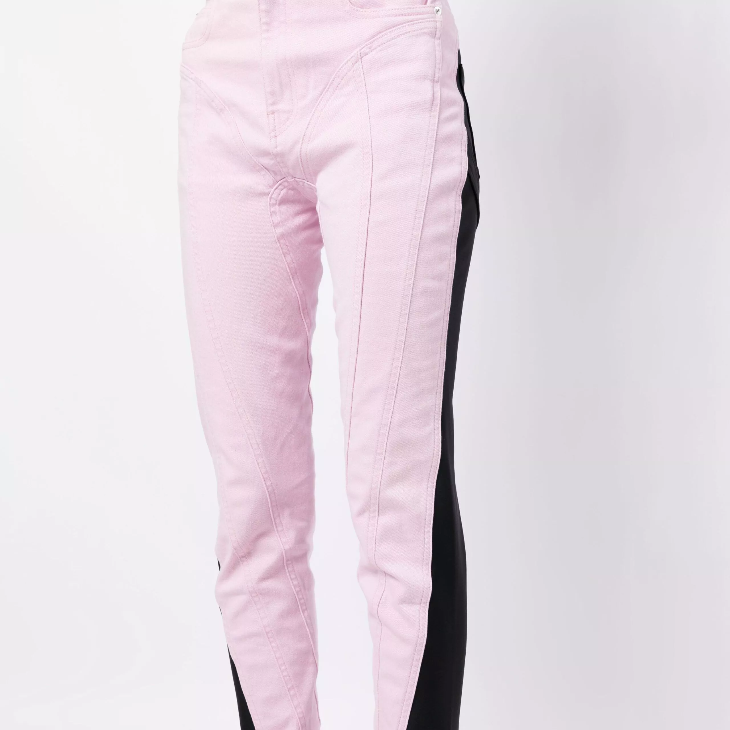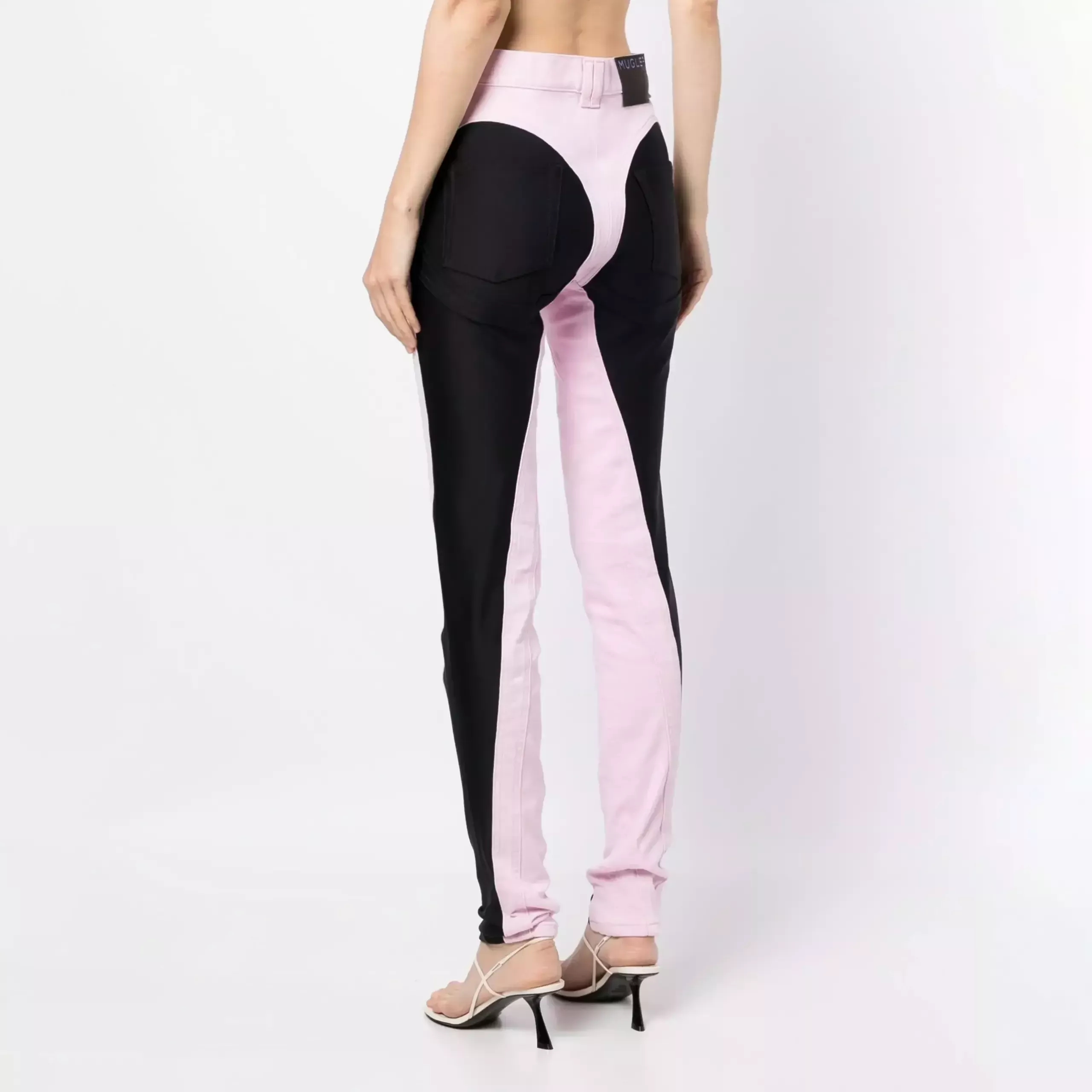 What sets these pants apart is their unique blend of style and practicality. The mid-waist cut ensures a flattering fit for middle-aged women, while the thin denim fabric offers a comfortable wear without compromising on style. The spliced pink and black design adds a pop of color to your wardrobe, making these jeans a standout piece. Perfect for any casual or semi-formal event, these ankle-length pants pair effortlessly with your favorite tops and shoes.