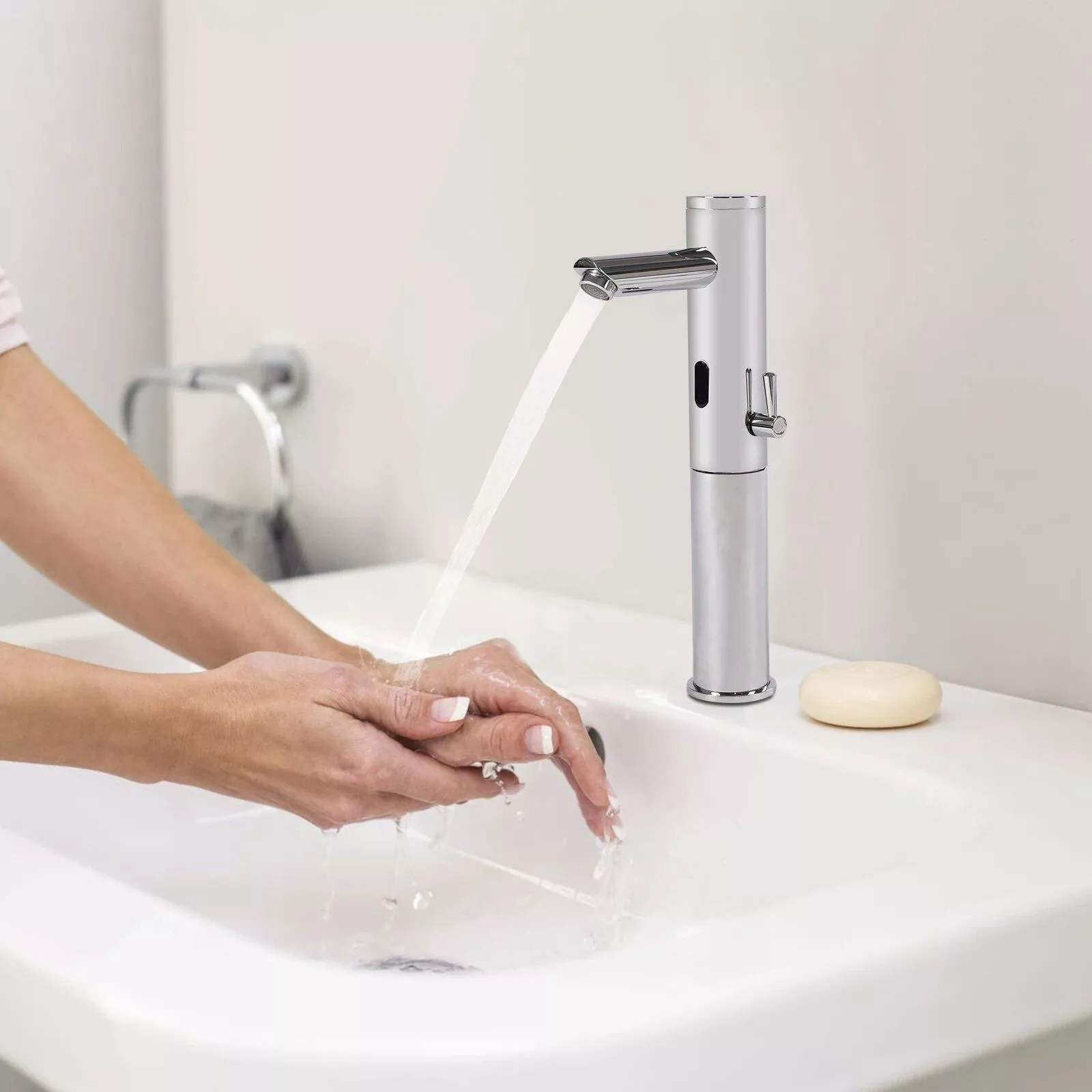 Our Chrome Touchless Sensor Bathroom Faucet is not just a faucet; it’s a statement of elegance and a step towards a healthier lifestyle. Its motion-sensing technology ensures that water flows only when needed, reducing waste and promoting cleanliness. The high-quality materials and chrome finish provide a durable, stylish solution that complements any bathroom décor. Whether you’re upgrading your home, hotel, or office bathroom, this faucet provides the perfect blend of form and function.
