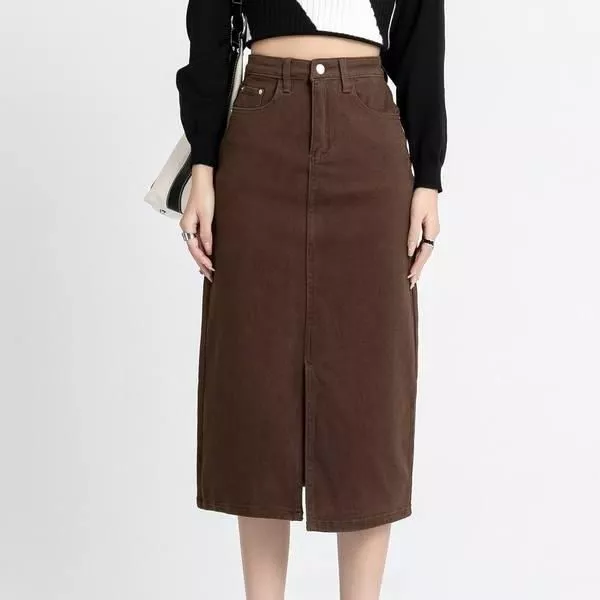 Introducing our exclusive knee-length denim pencil skirt, a blend of classic style and modern comfort. Perfect for women who cherish a blend of elegance and practicality, this skirt is a must-have in your wardrobe. Its high waist design and straight silhouette make it a versatile piece for various occasions, from casual outings to more formal settings.