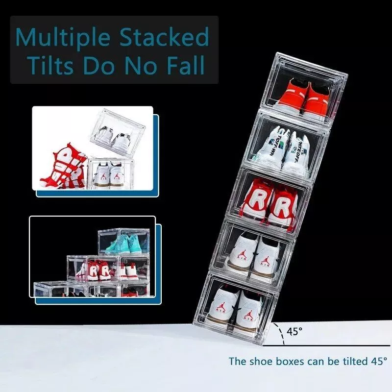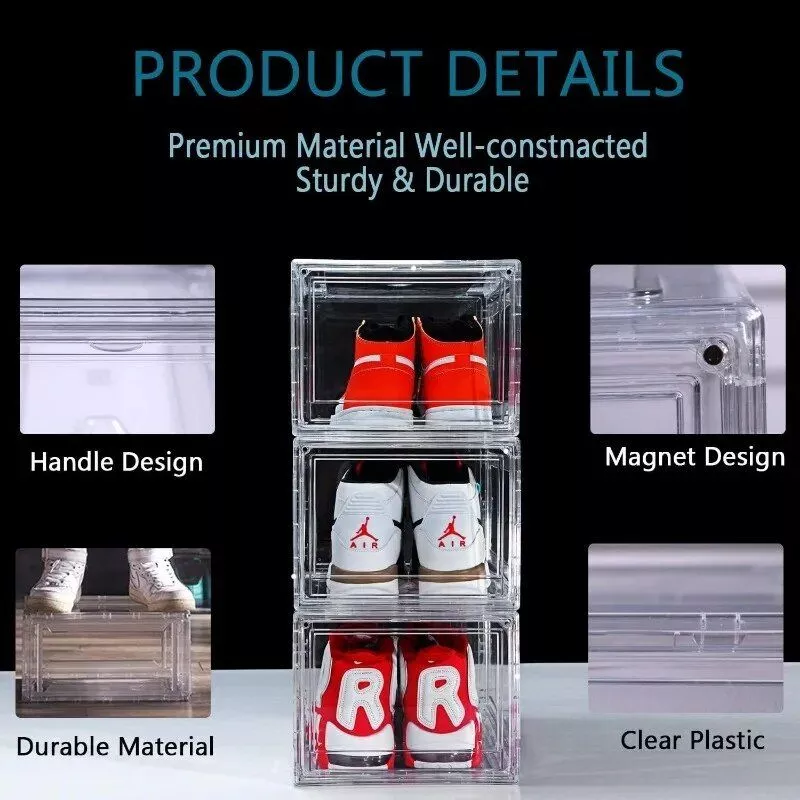 - Clear Visibility: Crafted from premium acrylic, these boxes provide a 360° clear view of your shoes while shielding them from dust and moisture.