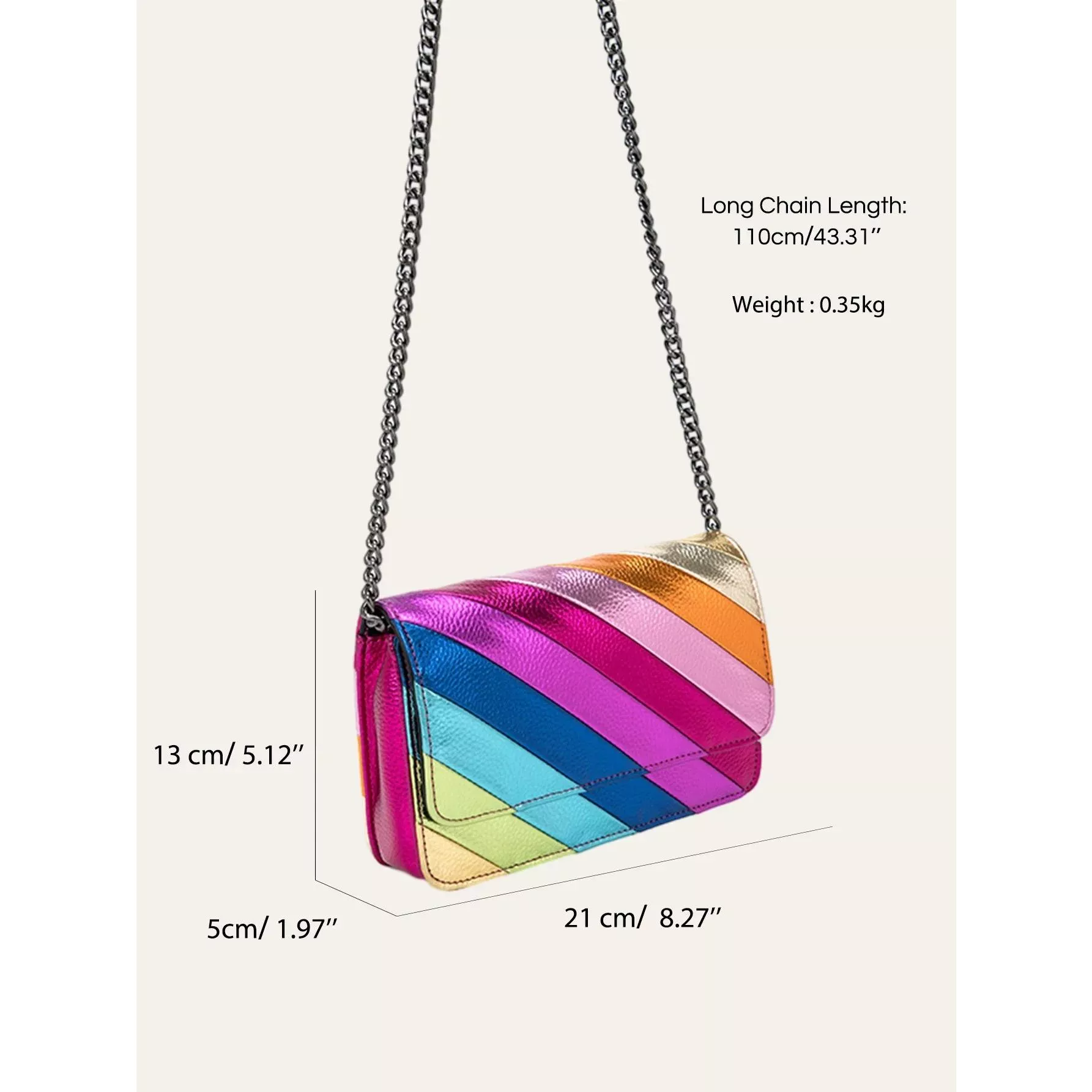 Introducing our latest addition to your fashion arsenal β the Colorful Striped Flap Handbag with Metal Chain. This chic, fashion-forward accessory is perfect for those who appreciate style without compromising on functionality. Its versatile design makes it an ideal companion for various occasions, whether you’re heading out for a casual day, a fancy evening, or anything in between.