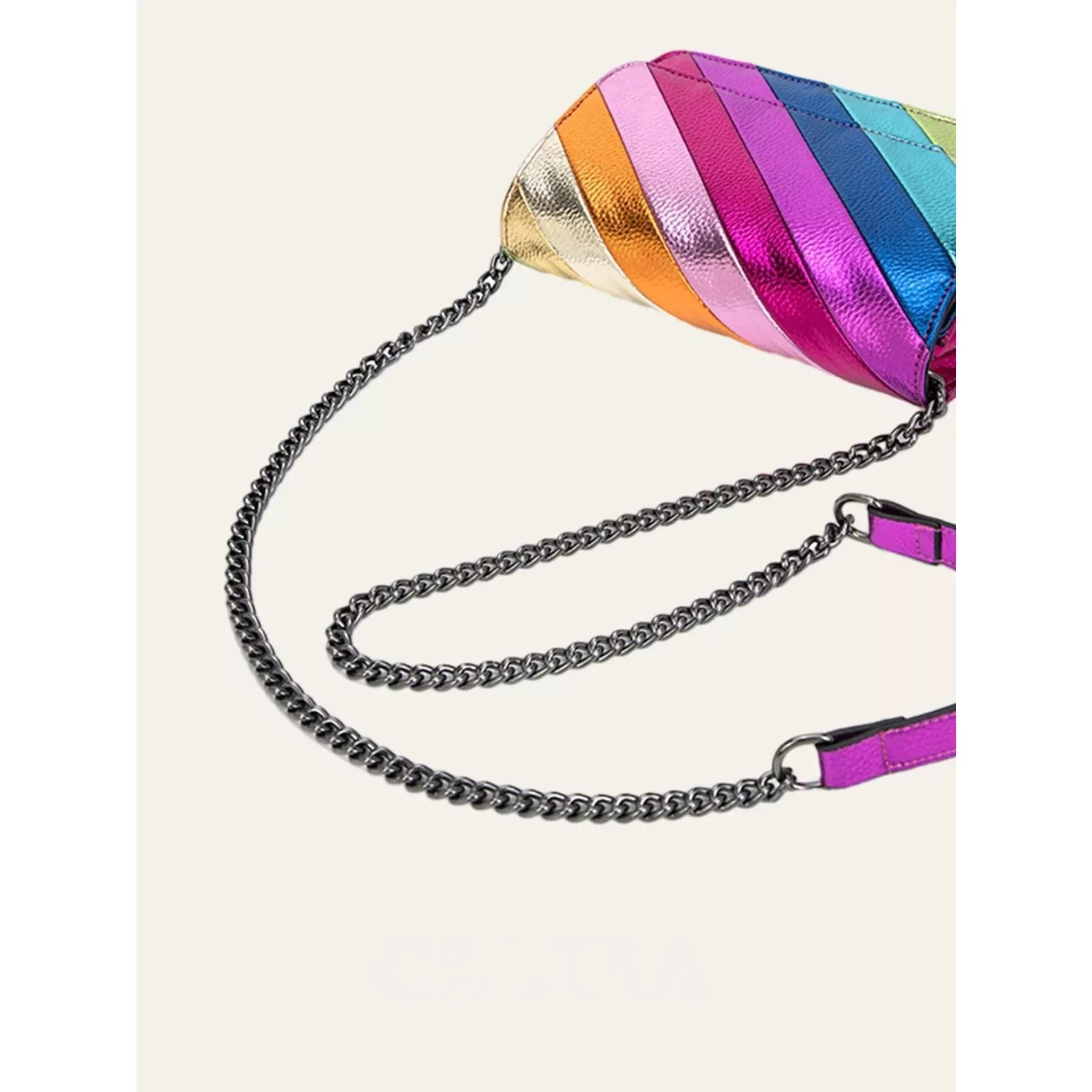 Our handbag stands out with its eye-catching rainbow stripes, giving you a pop of color that elevates any outfit. Crafted from high-quality vegan leather, it’s not just stylish but also environmentally friendly. The compact 8.3×5.1×2″ size ensures it’s never cumbersome, while the interior slot pocket keeps your essentials organized. With a moderate hardness, it strikes the perfect balance between structure and flexibility.