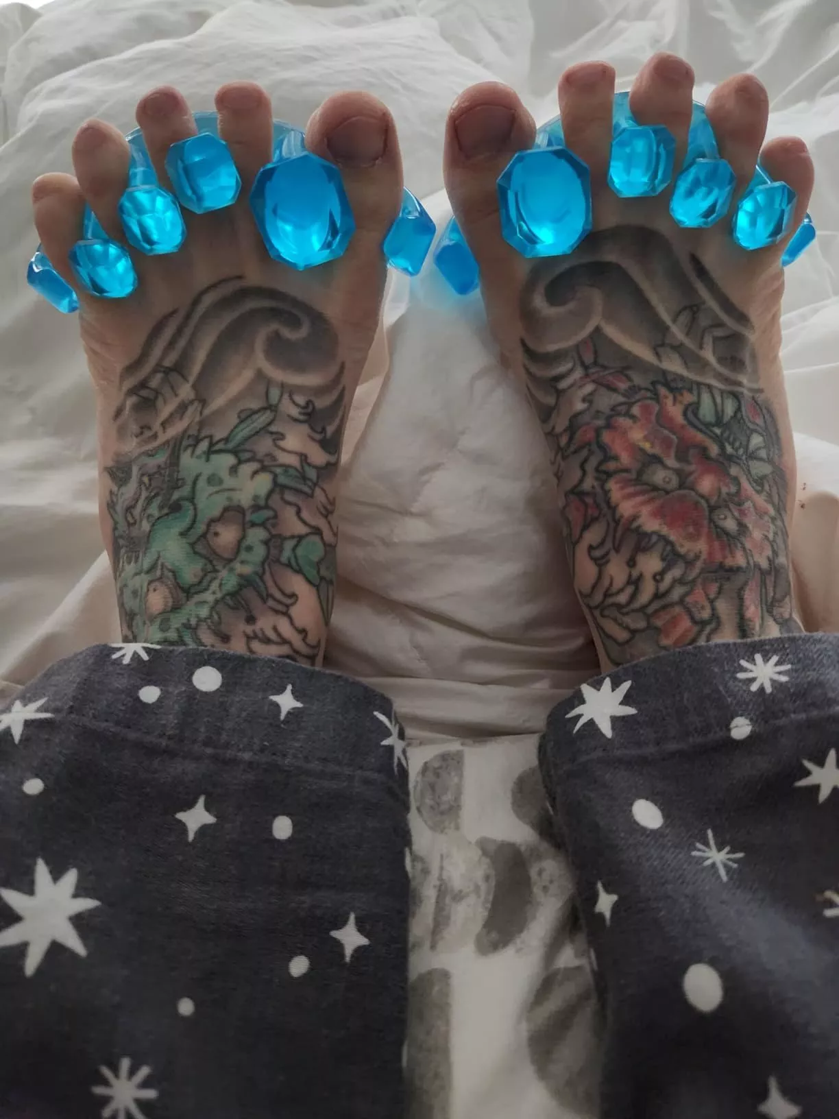 After years of wearing high heels and coping with a broken toe, I’ve found these separators to be incredibly comfortable and helpful in restoring mobility and alignment. Although not suitable for wearing with shoes or in bed, they’re ideal for extended periods of relaxation. Their unique design also adds a visually appealing element.