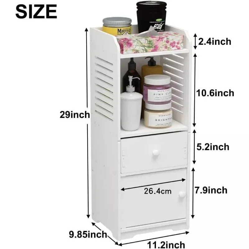 With its compact size, eco-friendly materials, and elegant design, our bathroom storage cabinet is specially crafted for those who value both form and function. Say goodbye to cluttered countertops and hello to a neatly organized, stylish bathroom. Don’t wait to transform your bathroom into a model of efficiency and design. Order now and enjoy the perfect blend of style, functionality, and durability.