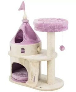 Every aspect of this cat tree is designed to keep your cat entertained and active. The sisal wrapped posts encourage natural scratching instincts, saving your furniture and carpet in the process. The castle’s turret, equipped with hide-and-seek cutouts and hanging plush toys, provides endless fun. Additionally, the rustling foil-crinkle blanket and dangling pom-pom add an extra layer of interactive play, stimulating your cat’s hunting instincts.