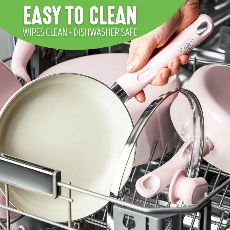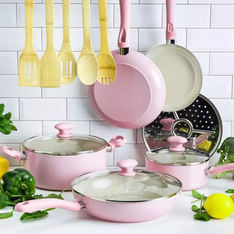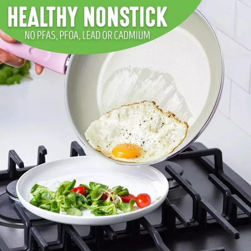 What sets this cookware apart is its commitment to sustainability and health. The innovative diamond-infused ceramic nonstick coating ensures easy release of food and minimal oil usage, while the construction from recycled materials speaks to a greener planet. The vibrant pink color adds a touch of fun and personality to your kitchen decor.