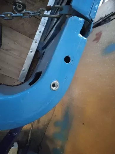 Finally, I screwed the bolt into the hole. Tightening it pulls the nut tighter into the metal, ensuring a secure fit.
