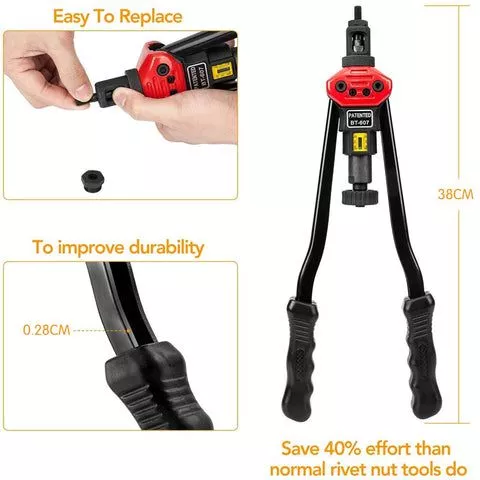Robust and Long-Lasting: Constructed from thick, heat-treated carbon steel and finished with black phosphating, this rivet nut tool is built to resist corrosion and endure rigorous use. Its strong and durable design guarantees long-term performance, making it a reliable addition to your toolkit.