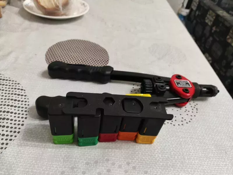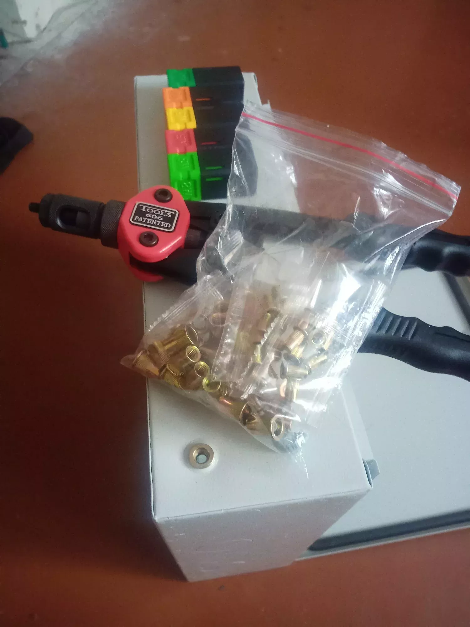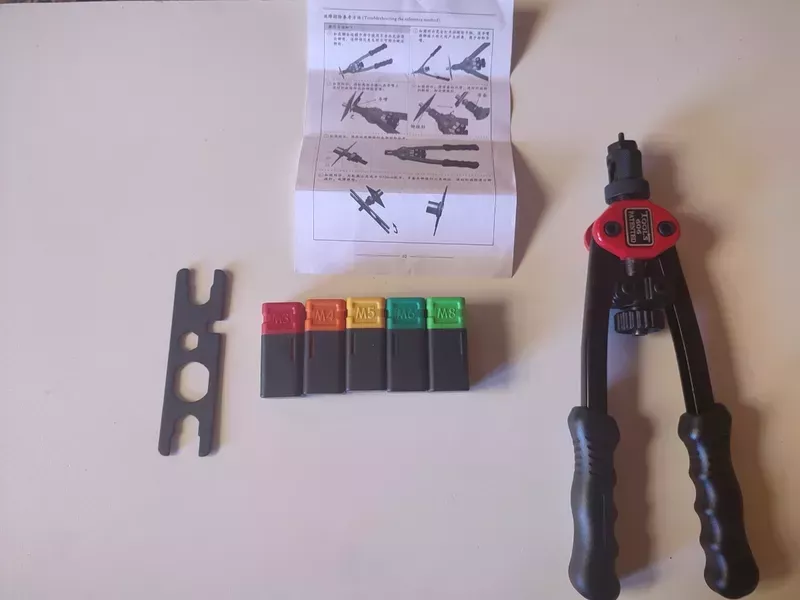 After getting a new bus for my company, I needed to move my work cabinet into it. For this, I bought rivet nut pliers. When I opened them, I noticed the M8 attachment was already in place, leaving the corresponding box empty.