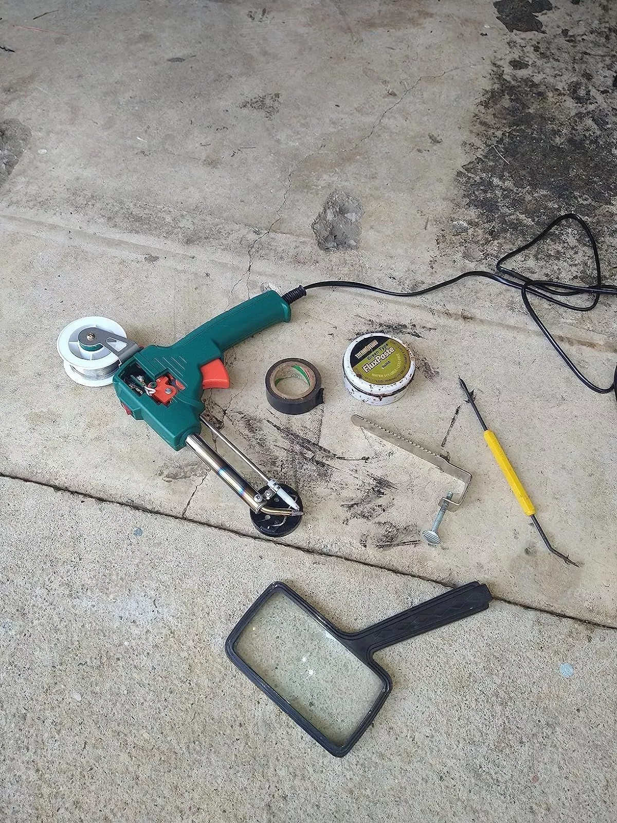 It’s a cool idea for a one-handed soldering gun, but it’s not made very well. The plastic body and the lid are hard to open. I had to fix the wire inside. It works after that, but it could be better.