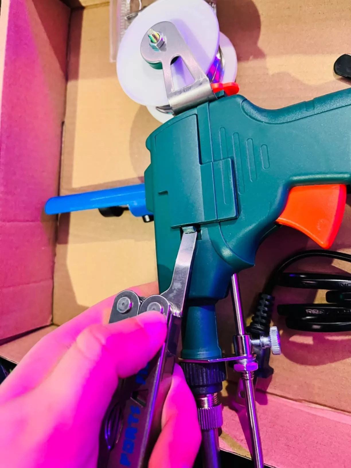 This automatic soldering gun is a breeze to use with one hand. Just a tip: when you load the solder spool, make sure it unwinds clockwise into the orange feeder cone. You’ll need a small flathead screwdriver to open the cover and get to the inside parts. When you feed the wire in, use tweezers to guide it straight into the orange cone right by the trigger. If you mess up and don’t get the wire into the right spot, no worries – just press the back part of the orange cone to reverse the wire and start over. This soldering gun has totally changed the game for me. It’s an amazing tool for home DIY and electrical work. I really recommend it to everyone.