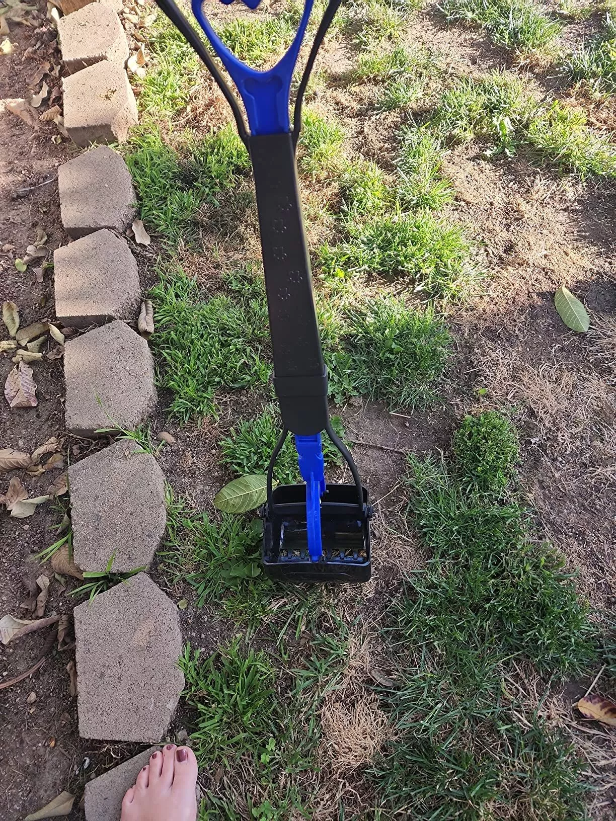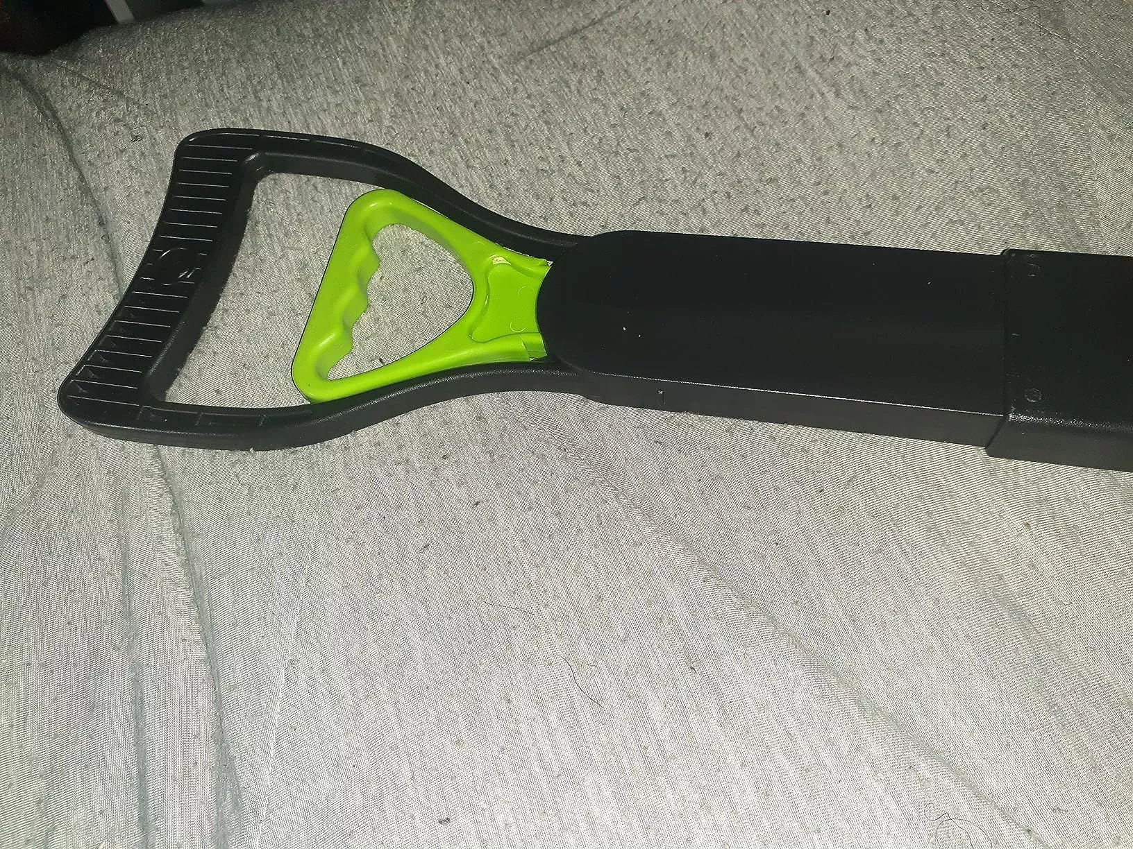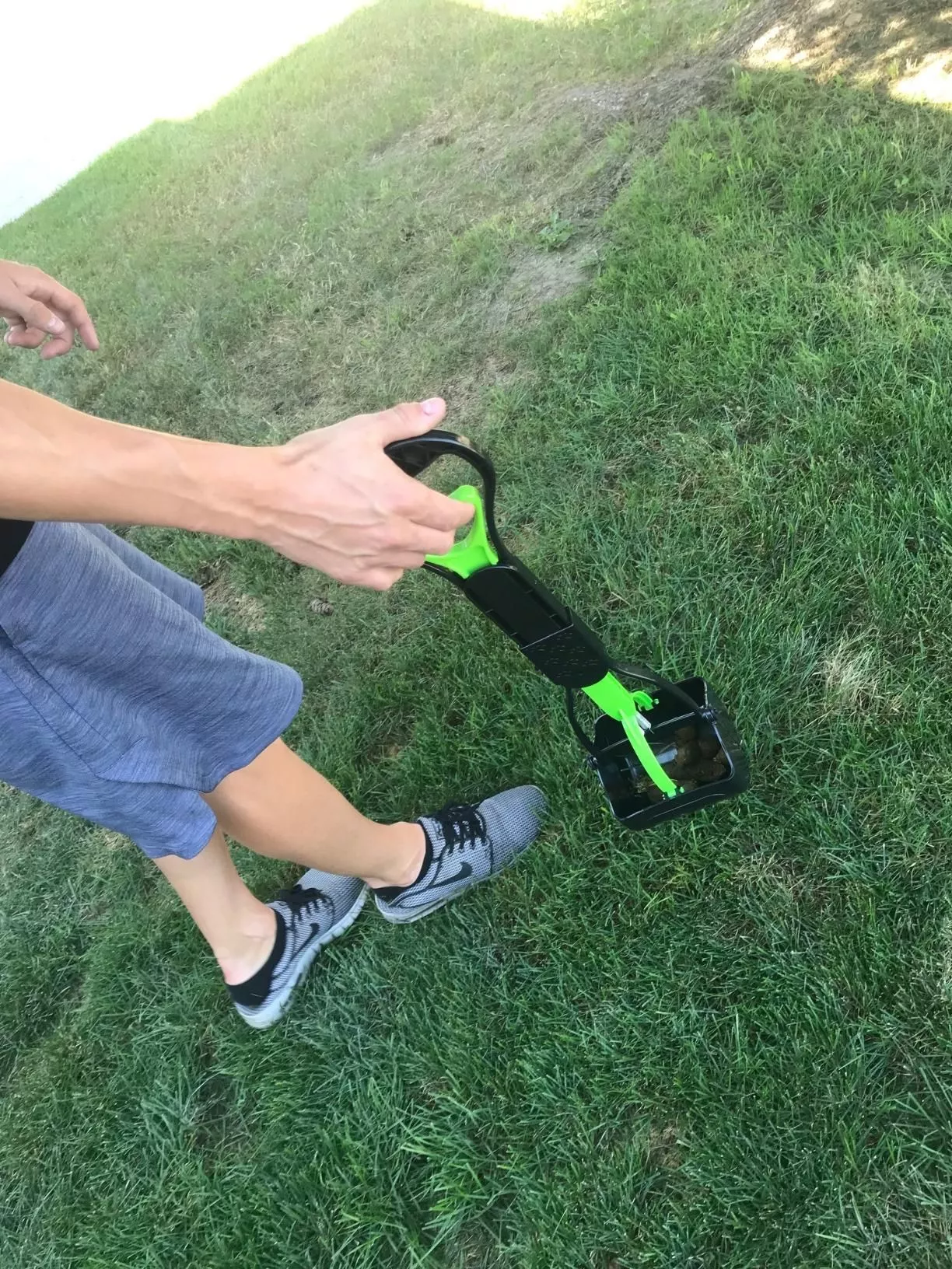 The product lives up to its description – sturdy plastic, no assembly required, and a convenient handle. While it claims to eliminate bending, my 5’11” stature still requires a slight bend. Nevertheless, it’s a worthy purchase for tackling the unpleasant task of pet waste.