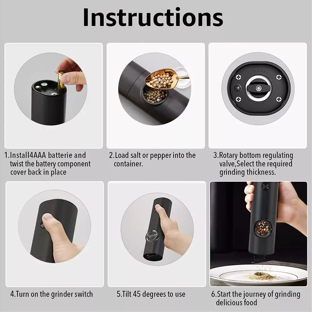 Upgrade your kitchen with a touch of modernity and efficiency. Enhance your meals, impress your guests, and relish the convenience. Dive into a luxurious culinary experience with our Electric Salt & Pepper Grinder Set. Order now and let the flavors roll! Note: Product color may slightly vary due to photographic lighting sources or your monitor settings. Please allow a 1-2cm deviation for measurements.