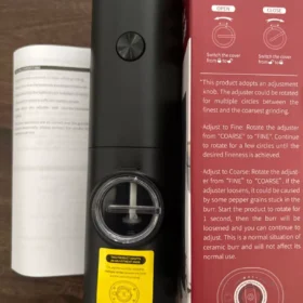 Perfect, great grinder, practical and comfortable. It has an excellent design and style, plus it’s made of solid material. It also has an adjustment for the pepper grind. Definitely going to buy another one for salt.